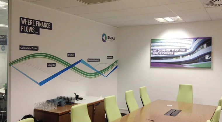 The delivery of a group company branding exercise for a fast growth company driven by its highly effective sales and key company acquisition strategy. The brief was to position ENRA as the parent holding brand underpinned by multiple sales led operations such as Enterprise and West One, each positioned to cater for a specific market segment. Designated zones of the head office were identified and dressed with the appropriate visual and engaging messaging, this was mirrored though the web presence and direct customer comms providing an immersive brand experience.